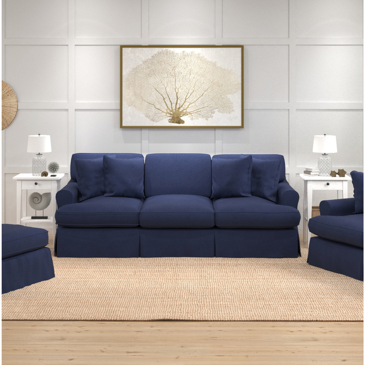HomeStock T-Cushion Slipcovered Sofa , Performance Fabric Washable Water-Resistant Stain-Proof , Navy Blue