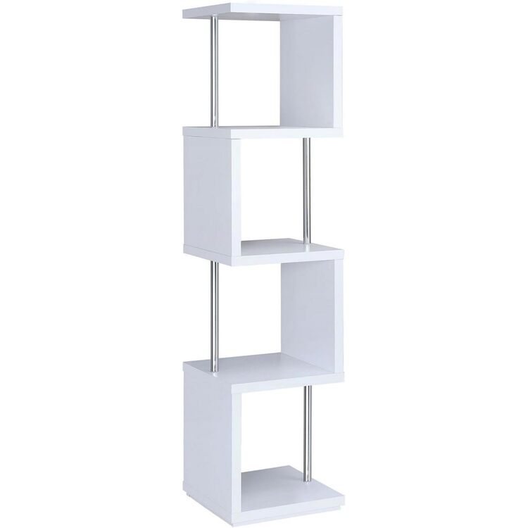 • HomeStock Timeless Tradition Four Tier Wood and Metal Bookcase White 15.5" L x 15.5" W x 66.5" H Compact and Innovative Storage Solution image - 1