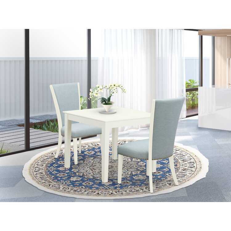 • HomeStock Timeless Trends 3 Piece Dining Table Set for Small Spaces Contains a Square Dining Room Table and 2 Blue Linen Fabric Parsons Chairs, 36x36 Inch, Linen White image - 1