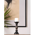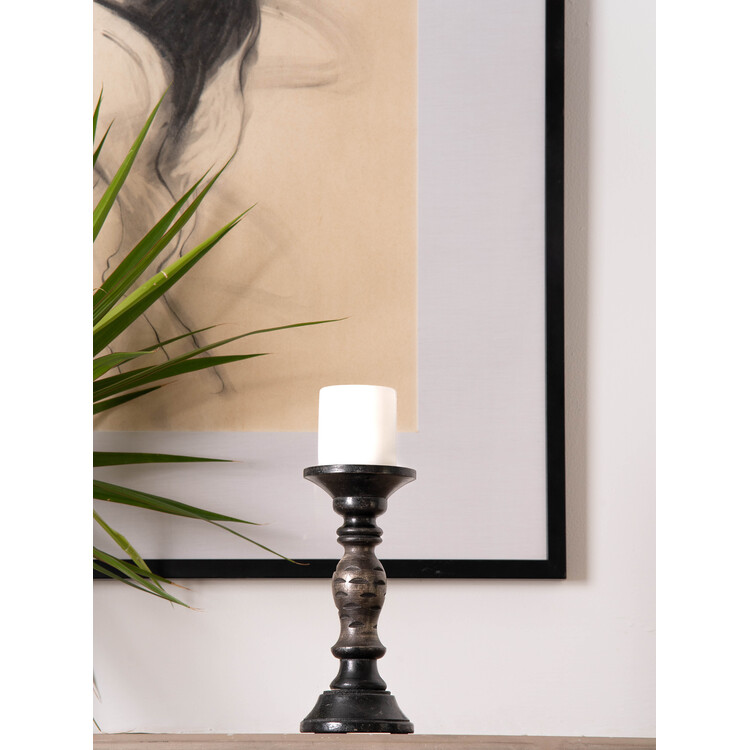 • HomeStock Traditional Dark Polish Handmade Mango Wood Set Of One 9" Pillar Candle Holder image - 1