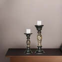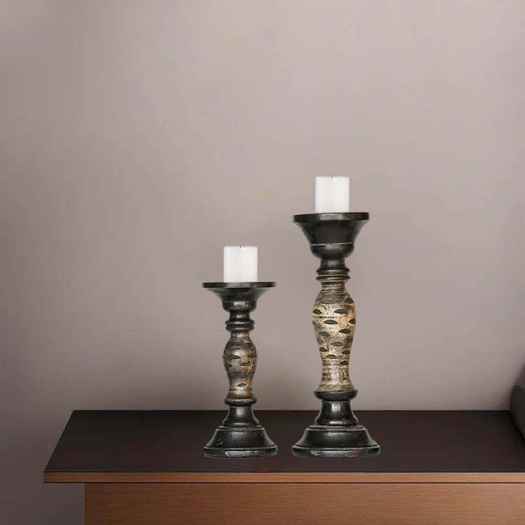 • HomeStock Traditional Dark Polish Handmade Mango Wood Set Of Two 9" & 12" Pillar Candle Holder image - 1