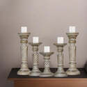 • HomeStock Traditional Gray Wash Handmade Mango Wood Set Of Five 12",9",6",9" & 12" Pillar Candle Holder image - 1