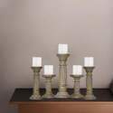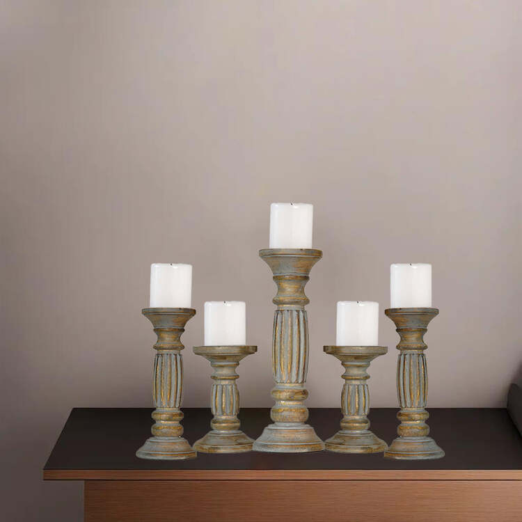 • HomeStock Traditional Gray Wash Handmade Mango Wood Set Of Five 6",9",12",9" & 6" Pillar Candle Holder image - 1