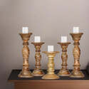 • HomeStock Traditional Medium Burnt Handmade Mango Wood Set Of Five 12",9",6",9" & 12" Pillar Candle Holder image - 1