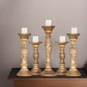 • HomeStock Traditional Wallnut Handmade Mango Wood Set Of Five 9",12",15",12" & 9" Pillar Candle Holder image - 1
