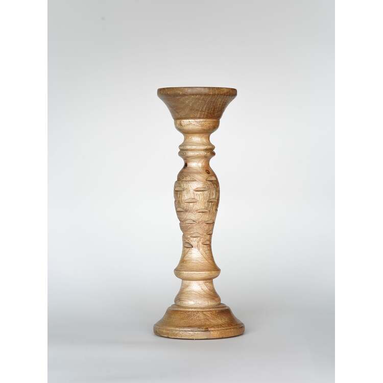 • HomeStock Traditional Wallnut Handmade Mango Wood Set Of One 12" Pillar Candle Holder image - 1