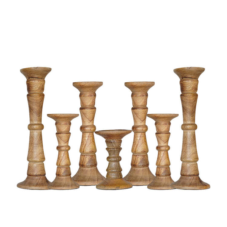 • HomeStock Traditional Wallnut Handmade Mango Wood Set Of Seven 15",12",9",6",9",12" & 15" Pillar Candle Holder image - 1