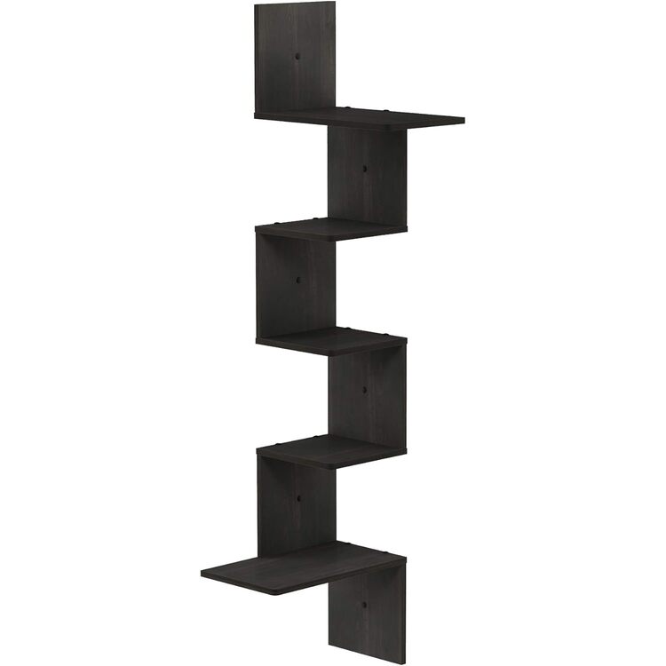 • HomeStock Tribal Treasures Modern Wall Floating Corner Shelf 13.39W x 48.66H x 13.39D Inches Espresso 5-Tier MDF Material Decorative and Functional Easy Assembly image - 1