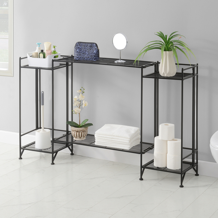 • HomeStock Tuscan Treats 2-Tier Folding Metal Shelves with 2 Extension Shelves, Sturdy Powder-Coated Frame, Adjustable Feet, Space-Saving Design for Home & Office image - 1