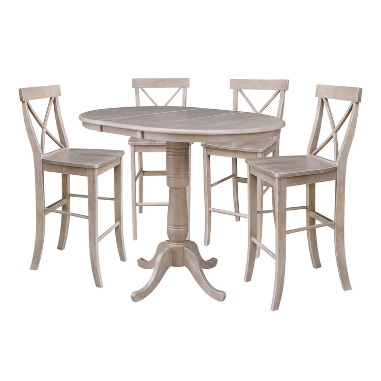 • HomeStock Upmarket 36" Round Extension Dining Table with 4 Bar Height Stools - 36" x 48" x 41", Solid Parawood, Expands from Dining to Bar Height, Modern Set image - 1