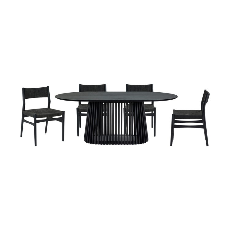• HomeStock Urban Upmarket 5-Piece Oval Dining Set, Black Oak Finish, 79"x47", Black Paper Cord Chairs, Contemporary Design, Easy Assembly image - 1