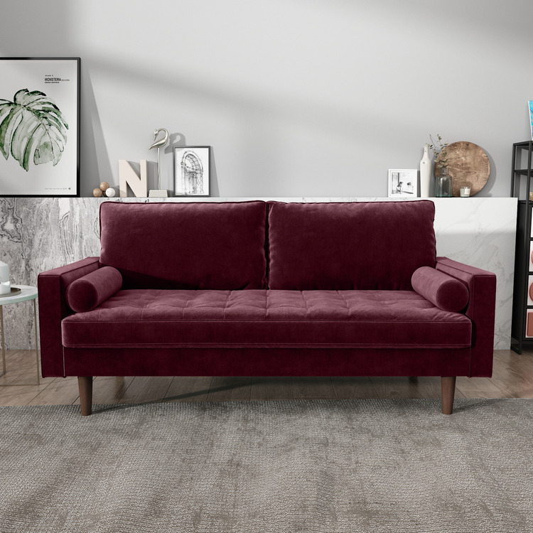 • Velvet Sofa, Living Room Couch, Mid-Century Modern Seating " Rosy image - 1