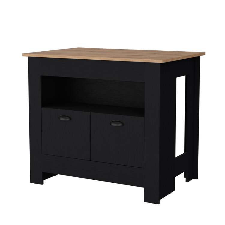 • HomeStock Variety Kitchen Island Two Door Cabinet and Shelf Black/Macadamia Color Dimensions 27.5" x 40.5" x 35.3" image - 1