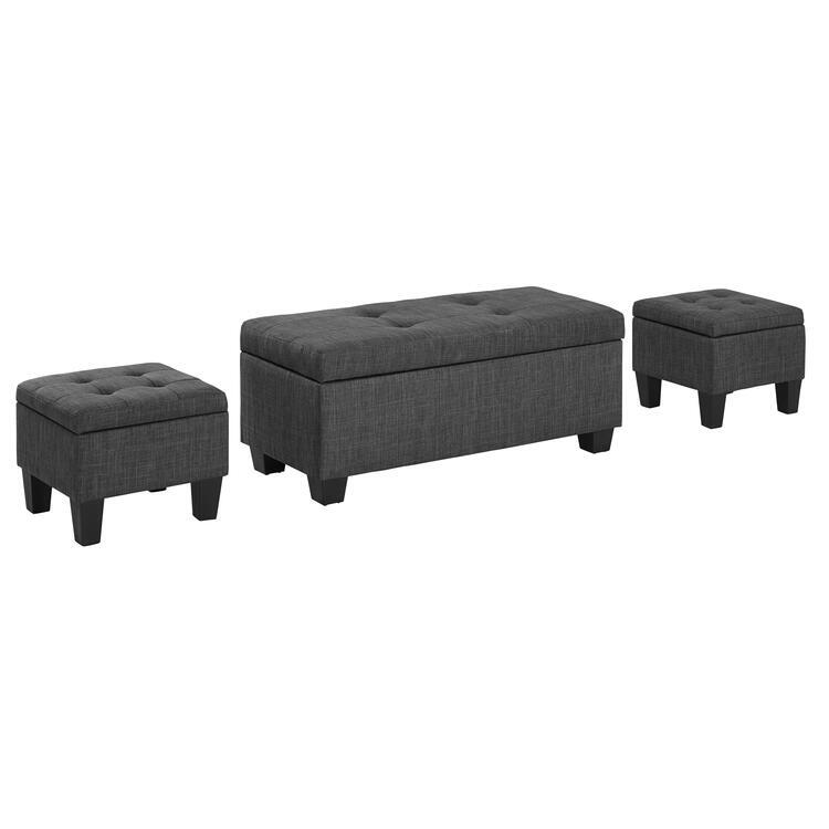 • HomeStock Victorian Vibes Blue Storage Ottoman Collection with Tufted Top, Espresso Feet, and Spacious Lift-Top Function for Extra Seating and Storage image - 1