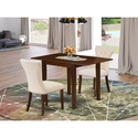 • HomeStock Vintage 3-Piece Kitchen Dinette Set - Drop Leaf Table & 2 Chairs - Light Beige Fabric Dining Room Set image - 1