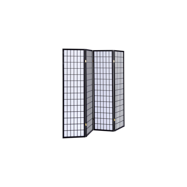 • HomeStock Antique Ambiance 4-Panel Folding Screen in Black and White with Contrasting Block Pattern and Wood Frame - Ideal for Room Separation and Privacy image - 1