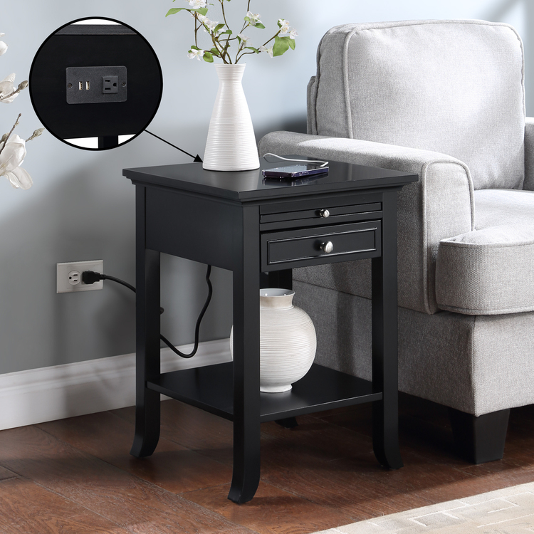 • HomeStock Vintage Variety End Table with Charging Station, 18-In x18-In x24.25-In , Functional Storage, 1 Drawer, Pull-Out Tray, USB & Power Outlet, Classic Design for Any Room image - 1