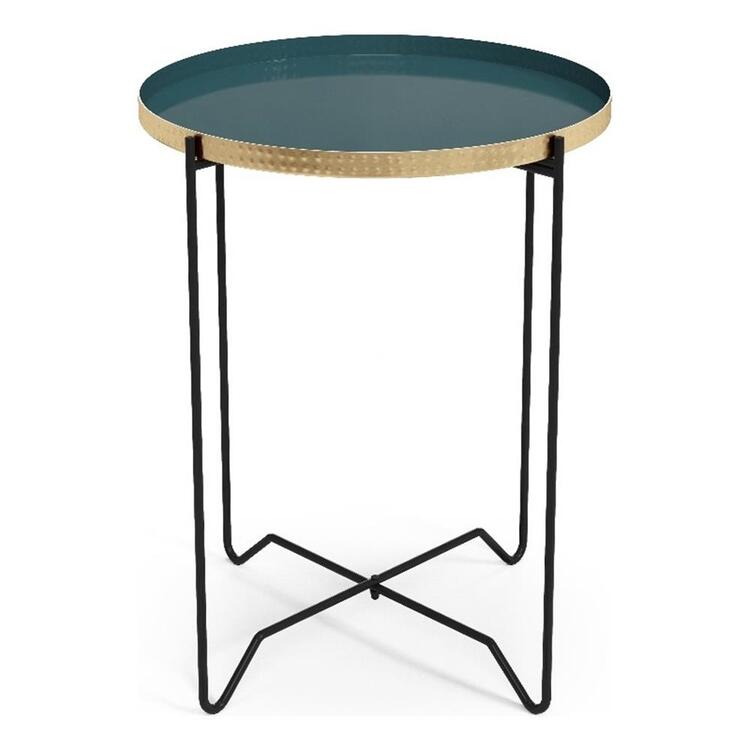 • HomeStock Vintage Vogue 19" Wide Round Metal Side Table in Teal - Handcrafted with Removable Tray, Collapsible Base, Perfect for Small Spaces & Entertaining image - 1