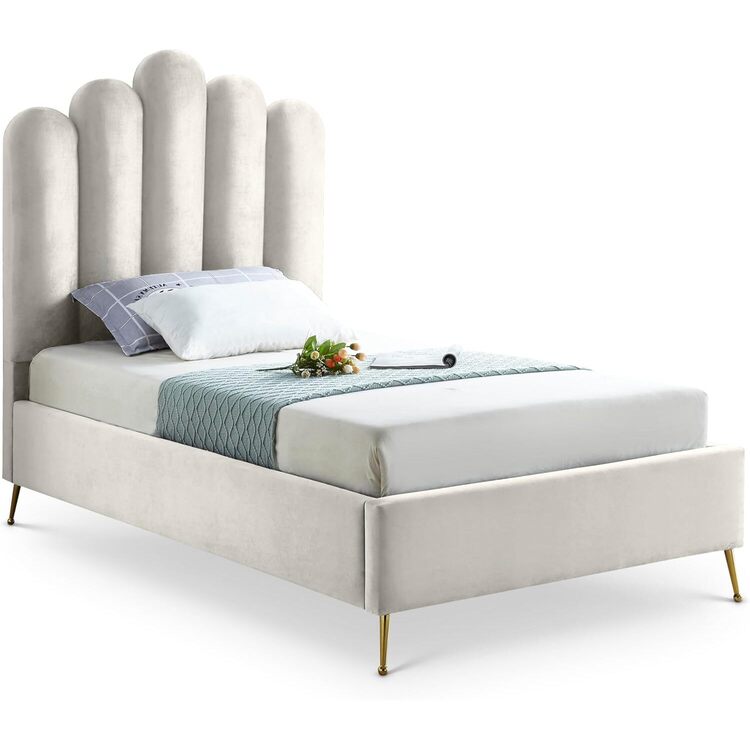 Velvet Platform Bed with Tufted Headboard & Gold Steel Legs - Bedroom Furniture