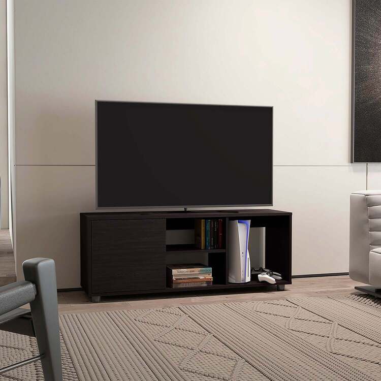 • White TV Stand 55 Inch - Media Console with Door & Shelves - HomeStock image - 1