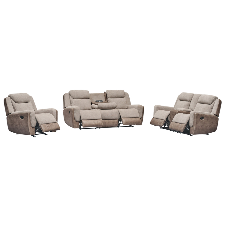 Hybition 3-Piece Living Room Recliner Sofa Set with Drop Down Table, Cup Holders, USB Ports&Socket, Manual Recliners, Brown Retro Couch