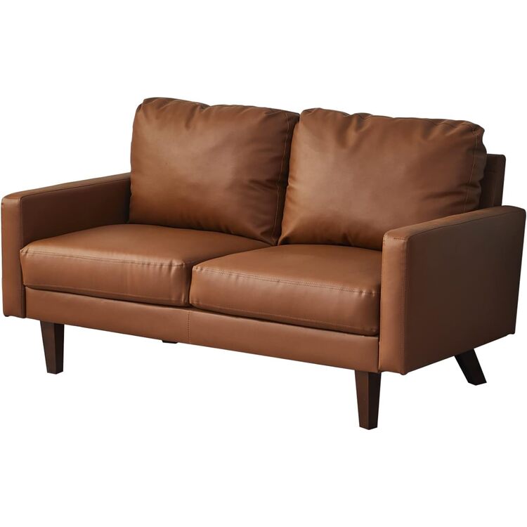 Modern Faux Leather Sofa with Wooden Legs - Living Room Couch