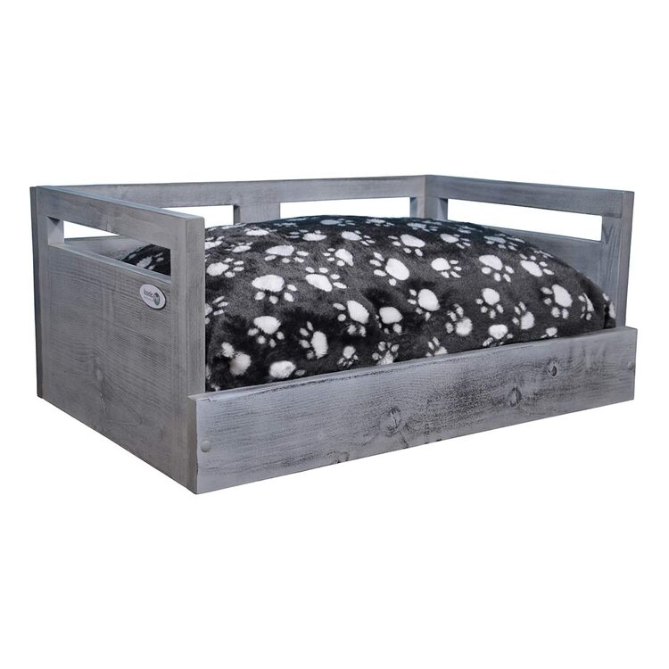 • Iconic Pet Sassy Paws Wooden Pet Bed with Paw Printed Comfy Cushion - Medium image - 1
