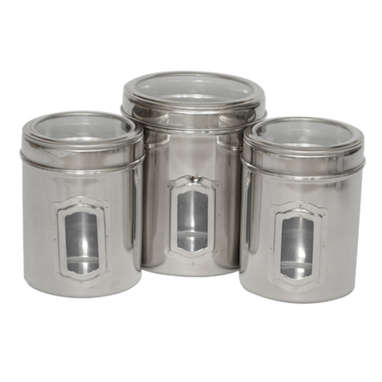 • Stainless Steel Canister Set with See Through Lids - 3 Different Sizes - Iconic Pet image - 1
