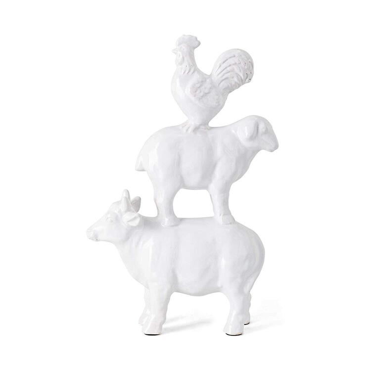 Ceramic Stacked Farm Animal Statuary - Rooster Sheep Cow - IMAX