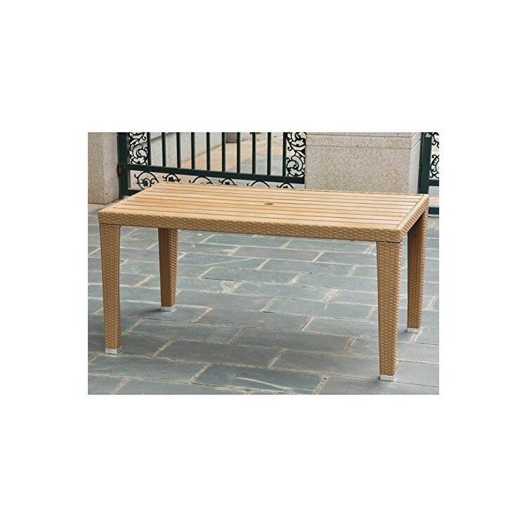 • Aluminum Wicker Dining Table Honey Resin Outdoor Rectangular - International Caravan image - 1