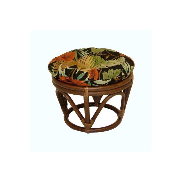 International Caravan Rattan Ottoman with Outdoor Cushion