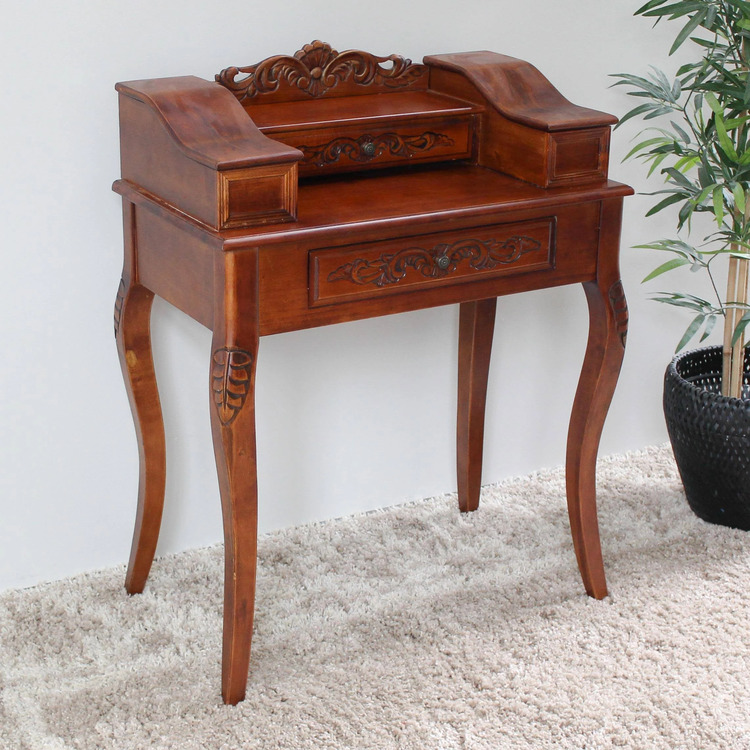 International Caravan Carved Wood Telephone Table with Drawers - International Caravan