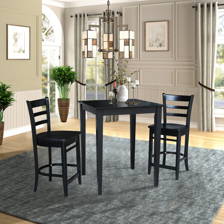 • International Concepts 30" x 30" Gathering Height Table with 2 Emily Counter Height Stools - 3 Piece Set image - 1