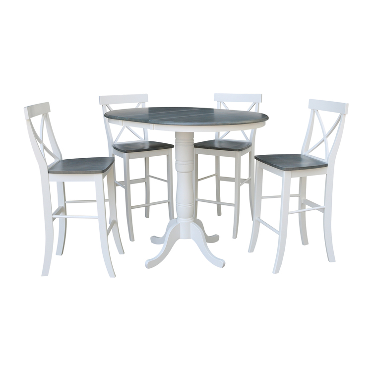 • International Concepts 36" Round Extension Dining Table With 4 X-back Bar Height Stools - Set of 5 Pieces image - 1