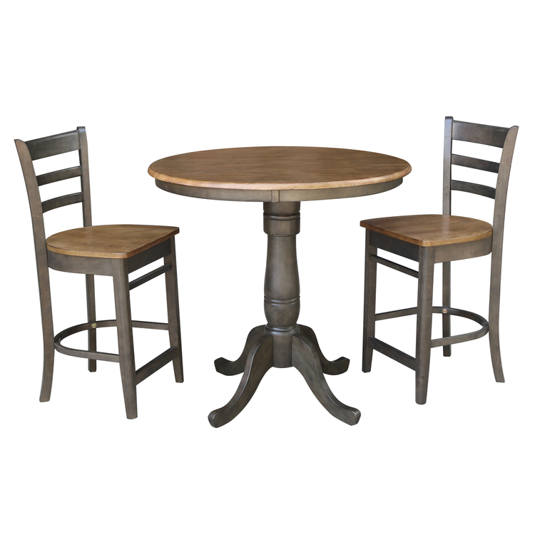 • International Concepts 36" Round Pedestal Gathering Height Table With 2 Emily Counter Height Stools - 3 Piece Set image - 1