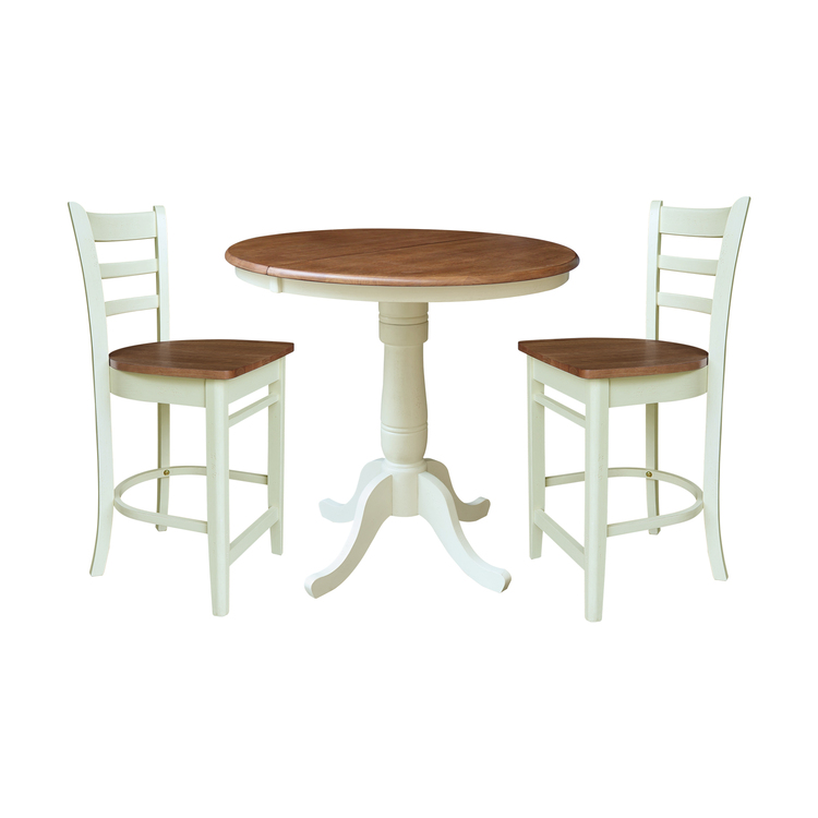 • International Concepts Round Extension Dining Table & 2 Stools - 36 Inch image - 1