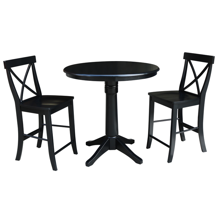 • International Concepts 36" Round Pedestal Gathering Height Table With 2 X-Back Counter Height Stools image - 1