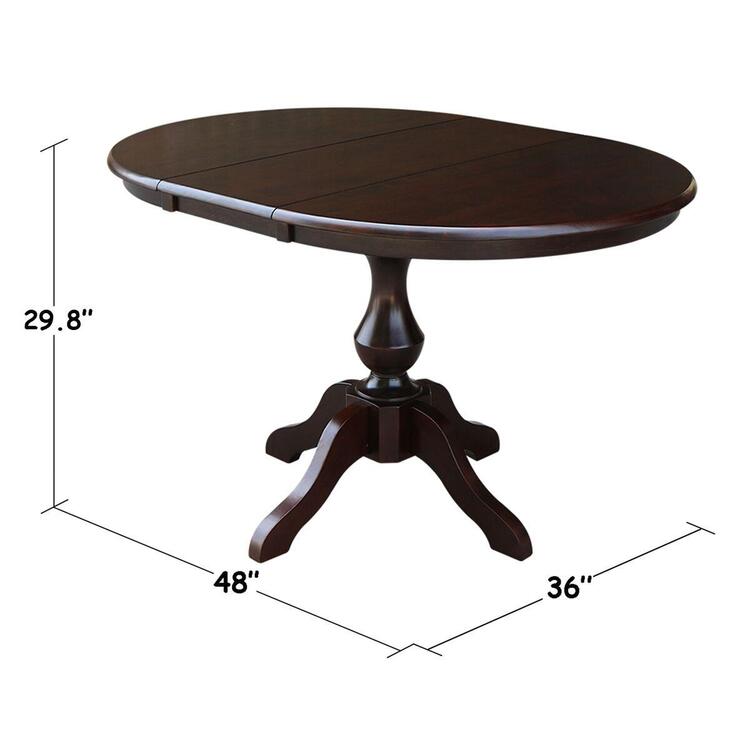 • International Concepts 36" Round Top Pedestal Table with 12" Leaf, Dining Height image - 1
