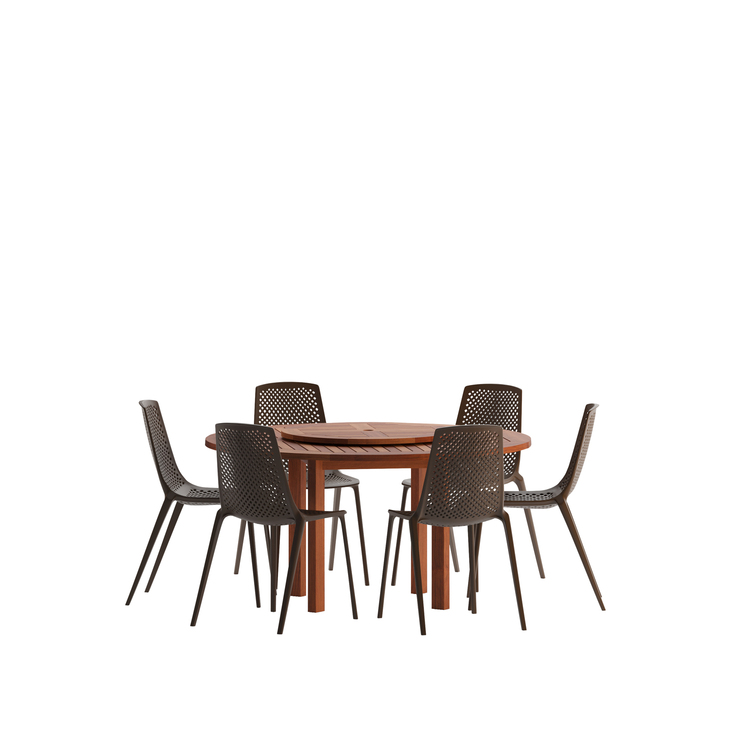 Amazonia 7 Piece Round Patio Dining Set W/Brown Plastic/Resin Chairs