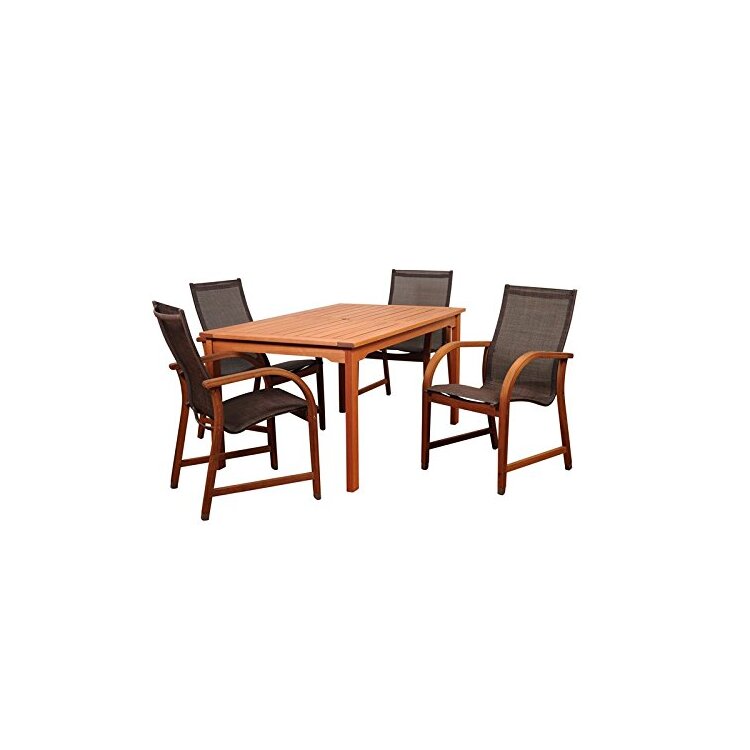 • Eucalyptus Rectangular Dining Set Brown Sling Chair 5 Piece - International Home Miami image - 1
