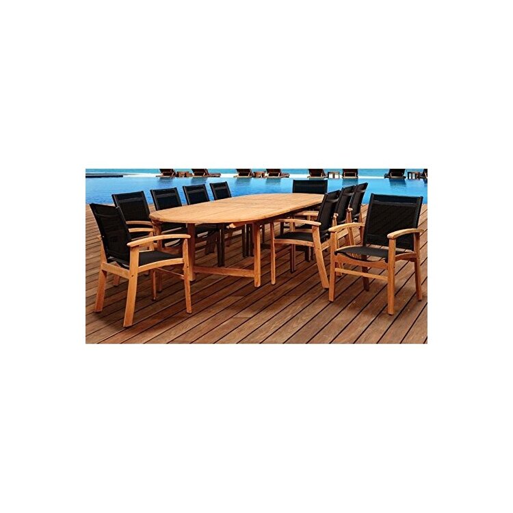• Teak Oval Dining Set Black Sling Chairs Double Extendable 11 Pieces - International Home Miami image - 1