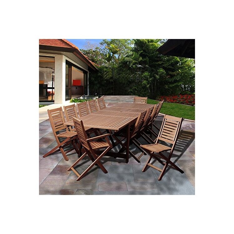 • Eucalyptus Wood Extendable Patio Dining Set with Folding Armchairs & Chairs image - 1