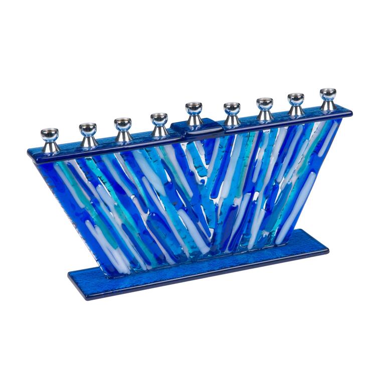 Israel Giftware Blue Fused Glass Menorah - Handmade Aluminum Candle Holders
