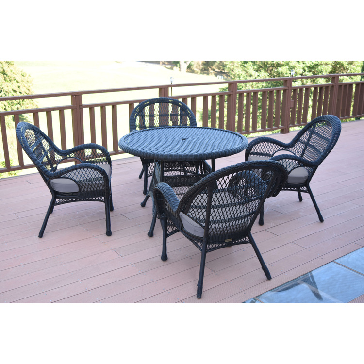 Resin Wicker 5pc Dining Set with Steel Frame and Cushions for Patio Outdoor Use