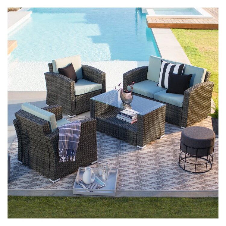 • Jeco 4 Piece Patio Conversation Set - Wicker Outdoor Furniture image - 1