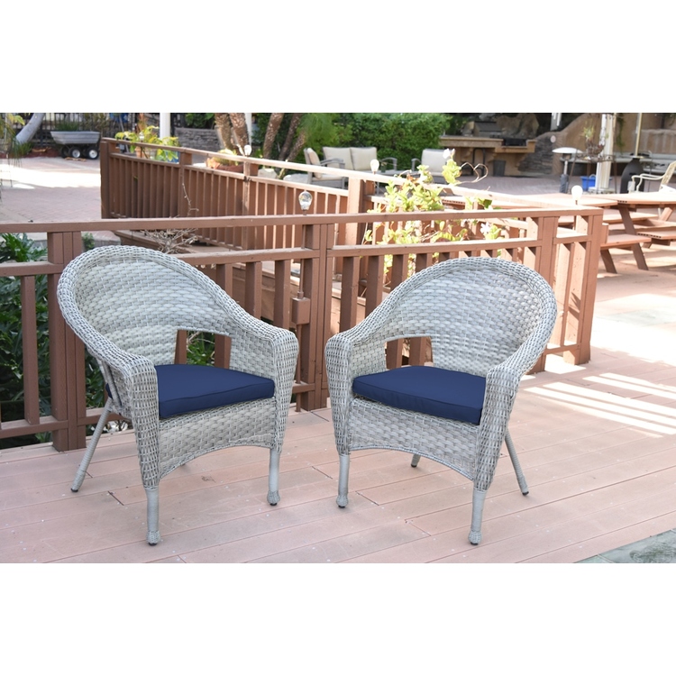 Jeco Resin Wicker Chairs - Set of 2 - Midnight Blue Cushions