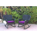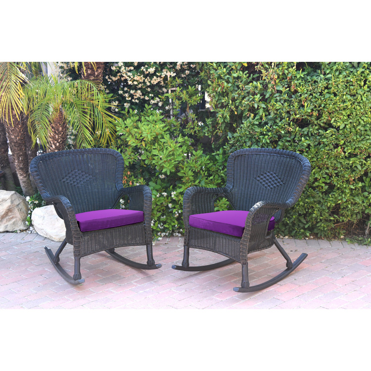 • Resin Wicker Outdoor Rocker Chairs Set of 2 with Purple Cushions image - 1