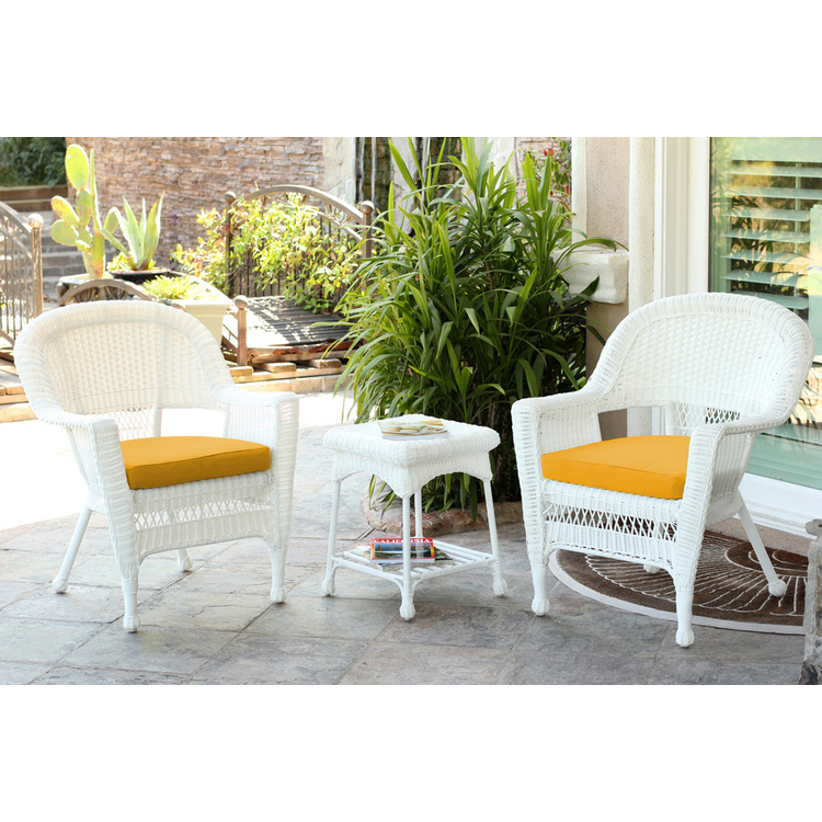 • Jeco White Wicker Chair And End Table Set With Mustard Chair Cushion image - 1
