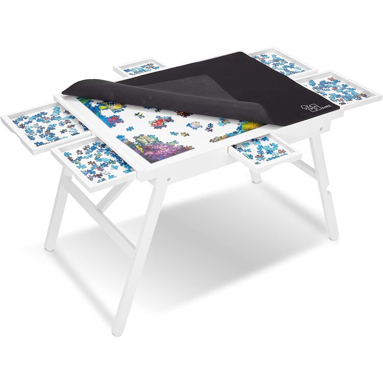 • Jumbl 1500 Piece Puzzle Table with Cover, 27? x 35? Wooden Jigsaw Puzzle Board with 6 Legs image - 1