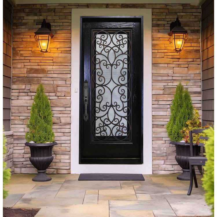 36 x 80 Exterior Wrought Iron Entry Door Espresso Finish